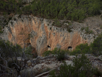 Hemos alcanzado altura lo que nos permite obtener esta espectacular fotografía sobre los orificios de los balcones del túnel de la carretera a la Puebla de Arenoso y la entrada del túnel.