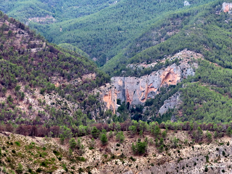 Este tramo que hemos iniciado es uno de los más espectaculares de Montanejos ya que transcurre a gran altura sobre el barranco de la Maimona lo que nos hará disfrutar de lo lindo.